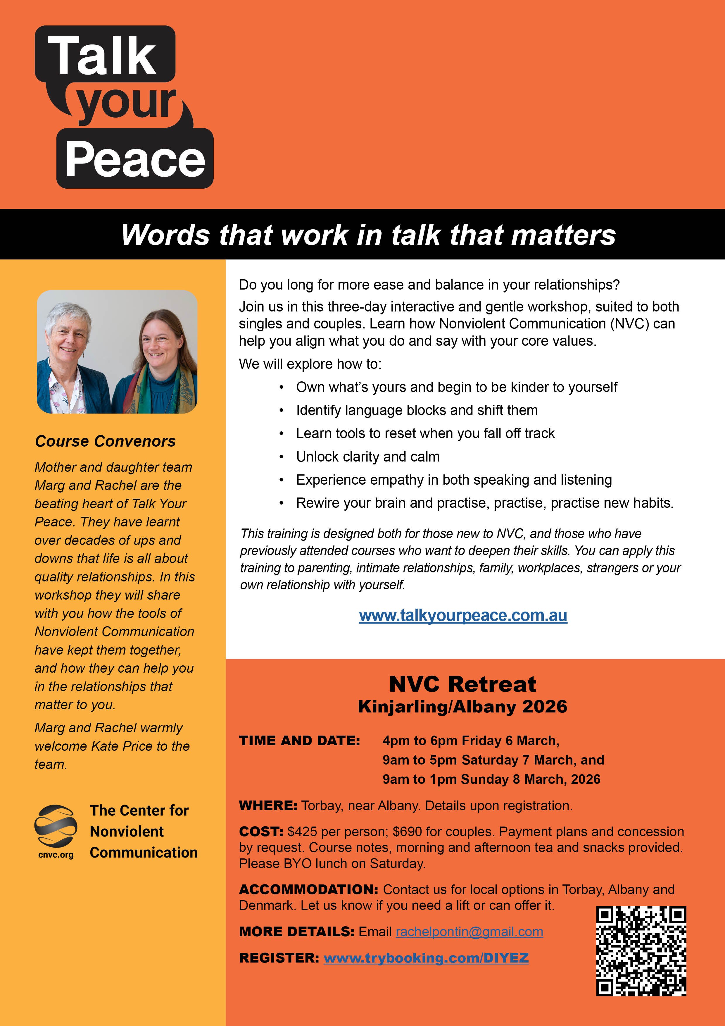 Talk Your Peace offers flexible communication training tailored to suit client needs. We offer resources that support NVC practice and learning.